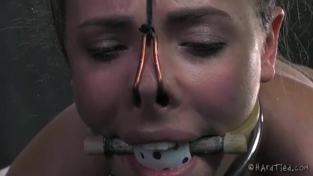 Хозяин раздел пленницу и ввел металлический крюк в киску