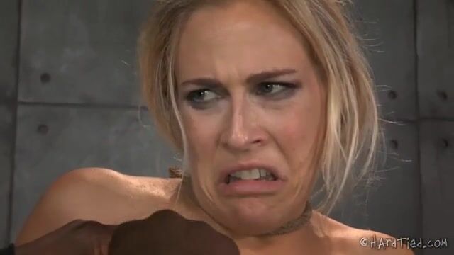 Чернокожий господин грубо дрочит пленнице игрушкой и доводит до яркого оргазма