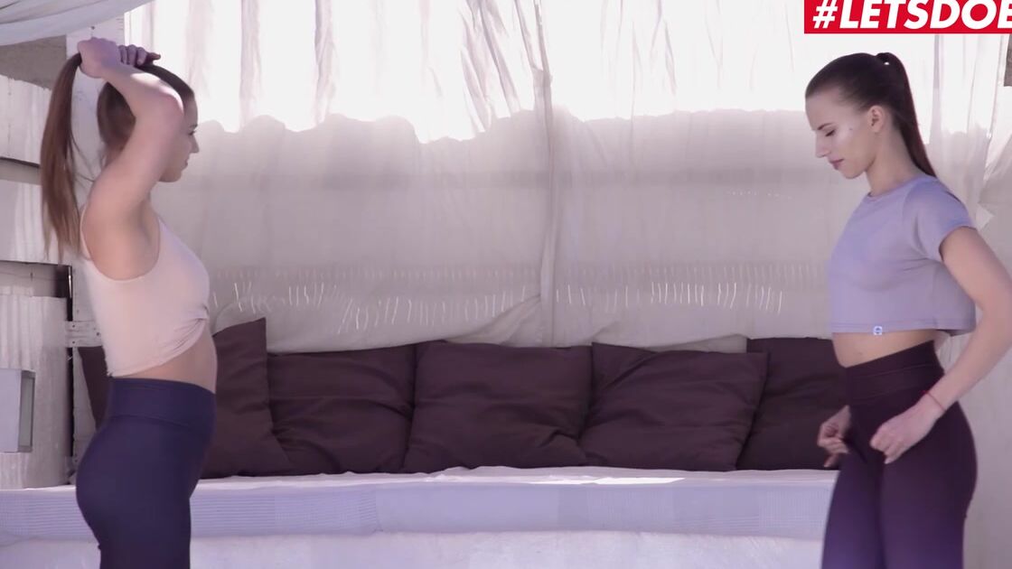 Парочка очень привлекательных молодых подружек сегодня делали растяжку и занимались физкультурой в своих обтягивающих штанишках, после чего решили заняться лесбийским сексом. Обе красавицы были очень возбуждены, поэтому быстренько раздеваются и сразу же берутся делать приятно друг дружке, нежно целуясь и лаская тела ручками. Одна из девах укладывается на спину и широко расставив ножки, позволяет партнерше хорошенечко поработать языком. Благодаря кунилингусу обе прошмандовки гарантировано достигнут оргазма.