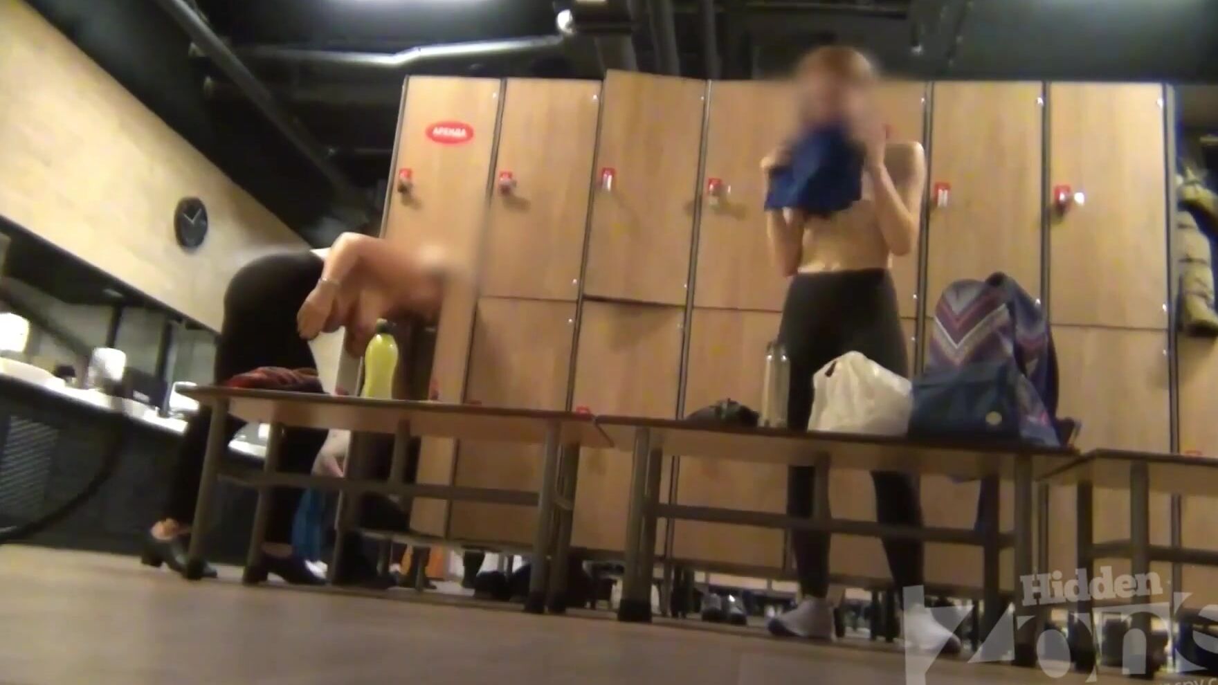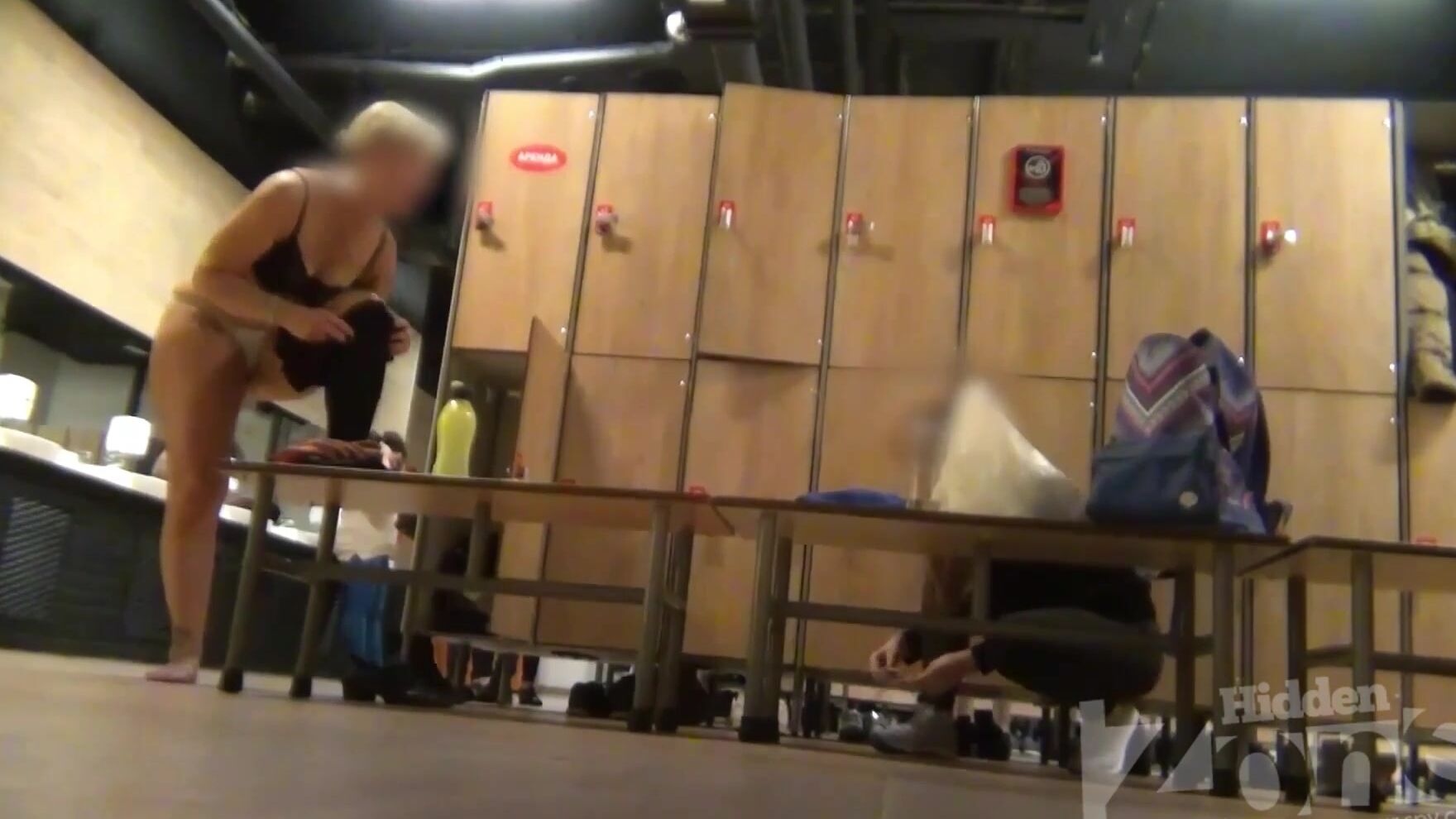 Любителям подсмотреть понравится наблюдать за соблазнительной мамкой, которая гуляет по раздевалке без трусиков. Подвигав задом, зрелая стерва присаживается на деревянную скамейку, подтягивает белье и что-то говорит.