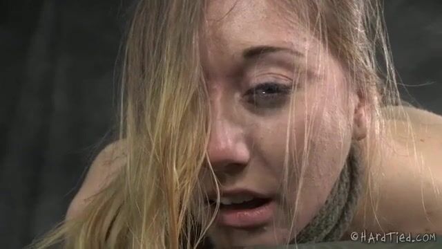 Грязный мужик связывает голую рабыню и шлепает по жопе