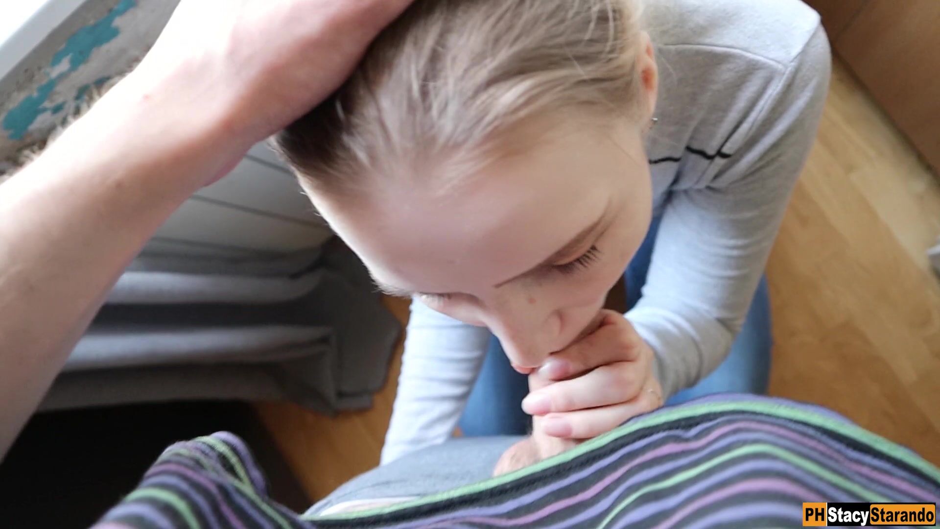 Возбужденный парень уговаривает подружку порадовать его минетом и вскоре она падает перед ним на колени. Она обхватывает торчащий перед ее лицом болт и услужливо заглатывает в умелый ротик. Самец помогает красотке сосать, подталкивая руками ее голову. Доведя дружка до эякуляции, она получает сперму на мордашку в качестве бонуса.