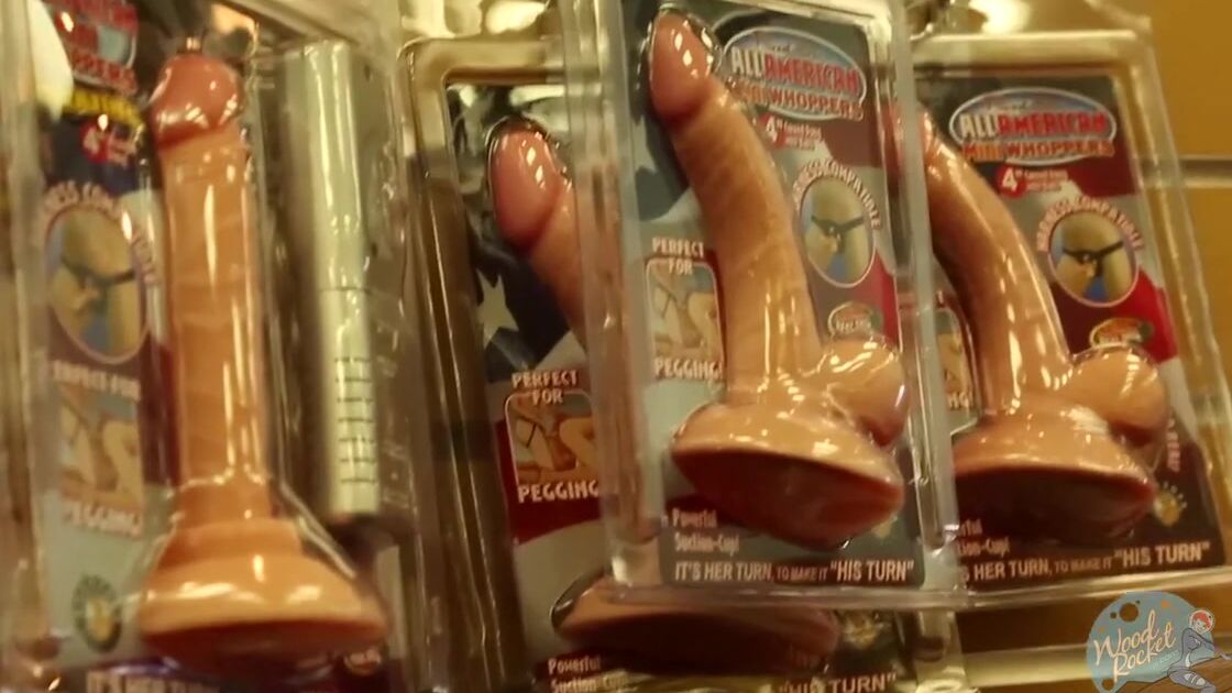Красотка гуляет по секс-шопу в поисках новых игрушек
