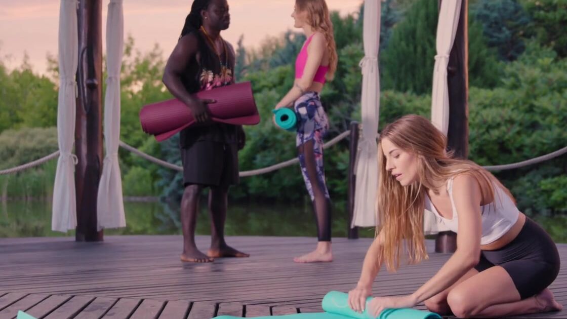 Привлекательная молоденькая девушка занимается йогой и сегодня положила глаз на одного чернокожего мужчину, которого решила соблазнить. Для столь аппетитной девчонки это совершенно не составит проблем и уже вскоре негодница насасывала вздыбленный стояк партнера, лаская яйца ручками. После этого милаха наконец снимает тесные трусики и берется за активный вагинальный секс. Длинный стояк заставляет милашку аж извиваться от столь грубого секса и вскоре телочка наконец достигнет сильнейшего в жизни оргазма.