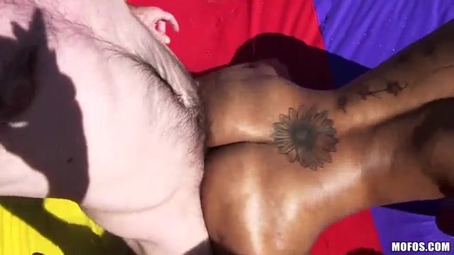 Любительница наколок отдалась садовнику во дворе