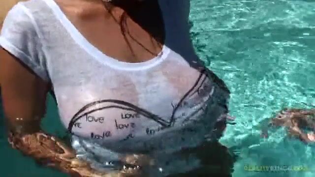 Прикольная шлюшка с мокрыми сиськами мастурбирует любовнику