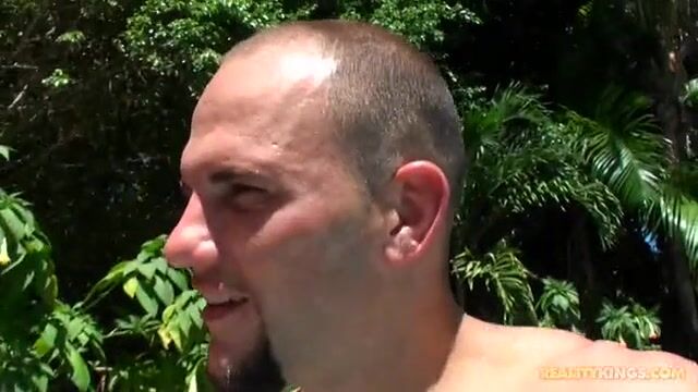 Прыткая баба отсасывает хуй и мастурбирует сиськами во дворе