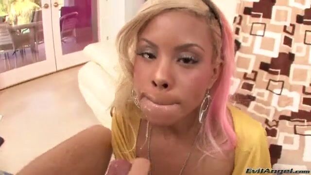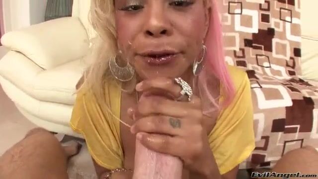 Молодая африканка посасывает хуй и пускает слюни