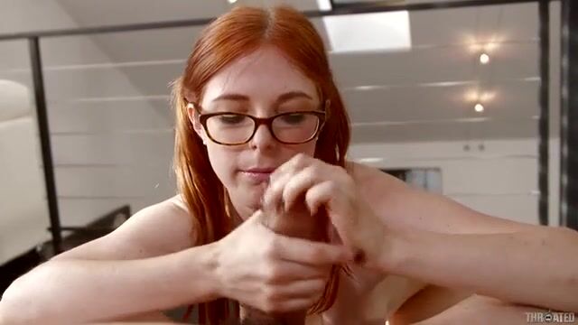 Очкастая милочка сосет хуй перед камерой и хихикает
