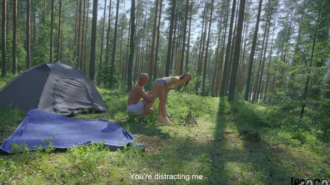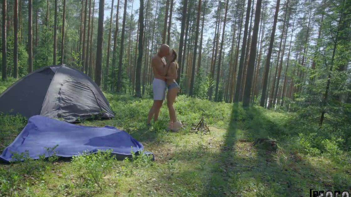 Молодая парочка обожает заниматься туризмом и сегодня они проводят день в глухом лесу, установив палатку. Симпатичная рыженькая девушка со стройным телом решает не упускать возможности заняться сексом на природе и соблазняет своего приятеля. Сначала деваха делает незабываемый минет, а потом укладывает чувака на землю и начинает насаживаться на его вздыбленный фаллос. Парнишка снимает все происходящее на камеру от первого лица до тех пор, пока не заставит милашку хорошенько достичь мощного оргазма.