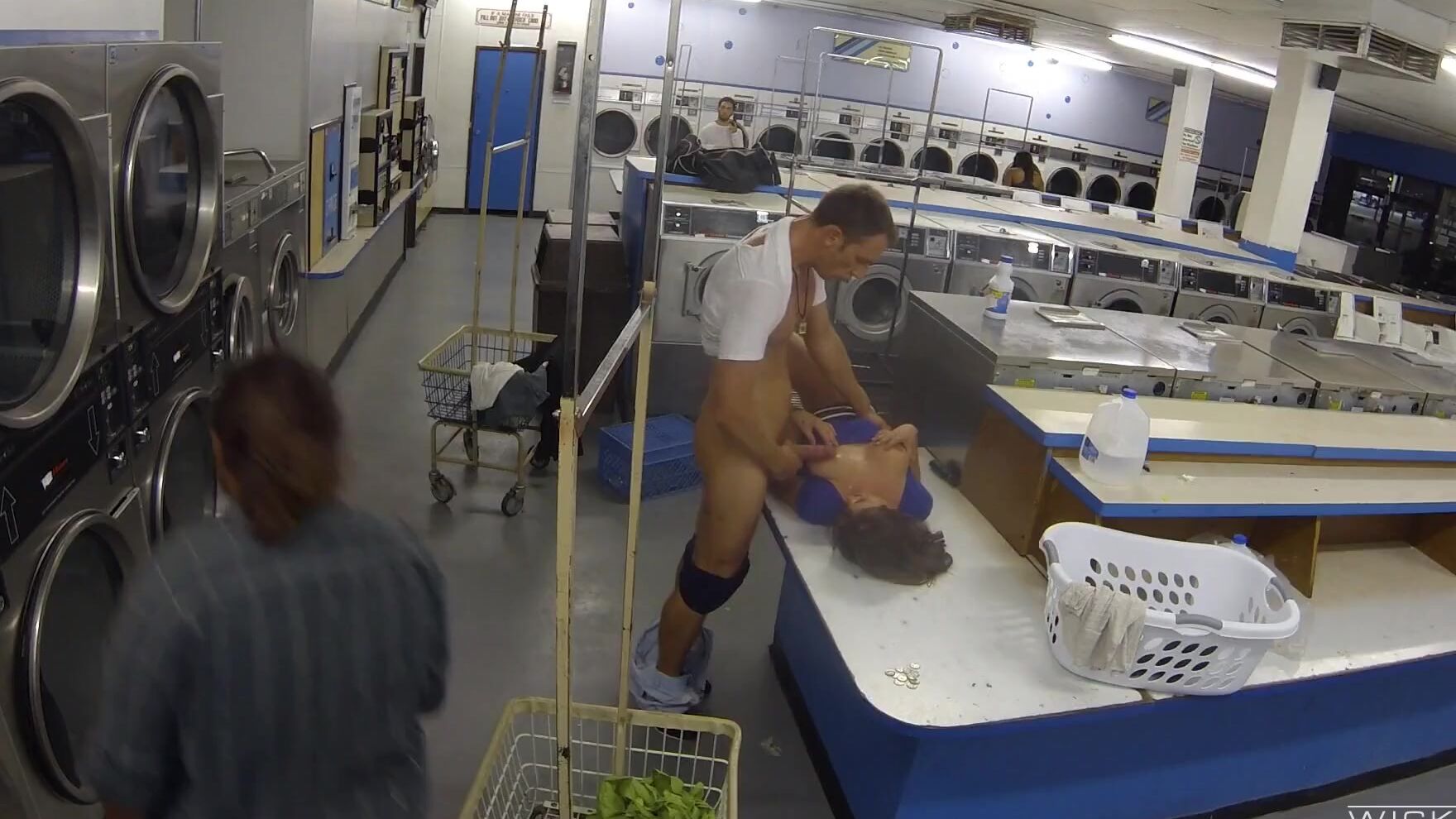 Пикапер подкатывает яйца к шикарной милфе в прачечной и вскоре в ее ротике оказывается его длинный член. Красотка смакует болт, успевая дрочить его руками. Возбужденная брюнетка наклоняется раком и получает в манду хер любовника. Она тихонько стонет от наслаждения, не подозревая о скрытой камере, которая фиксирует их разовый секс.