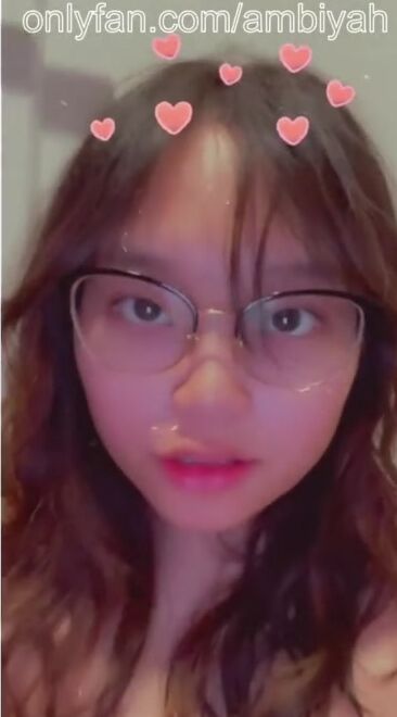 Пухлая азиатка в очках дрочит резиновым хуем