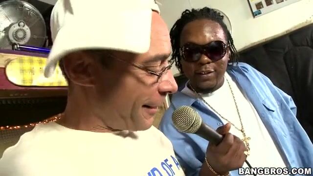 Растрепанная черная баба страстно сосет громадный хуй
