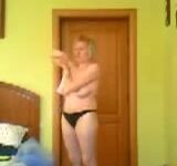 Подтянув черные трусы, сдобная мамаша побрела к себе в спальню, где была установлена скрытая камера. Потрусив сиськами, русая женщина начала надеваться. Прикрыв обнаженное тело, эротичная дама ушла на важную встречу.