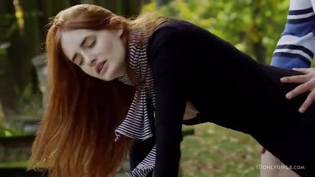 Симпатичная худышка в коротком платье удовлетворяет друга на улице