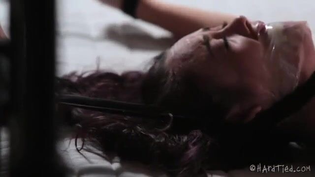Озабоченный хозяин связал голую рабыню и натирает киску игрушкой