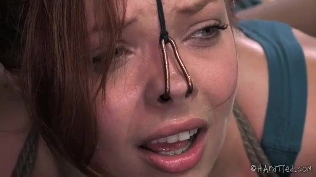 Рыжая пленница без нижнего белья подвергается грязным сексуальным пыткам