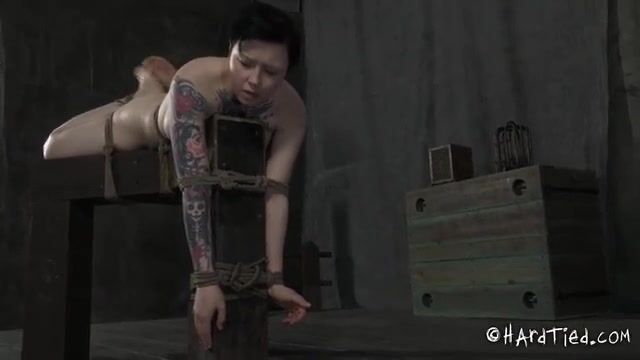 Татуированная пленница в эротичных шортах сексуально унижена господином