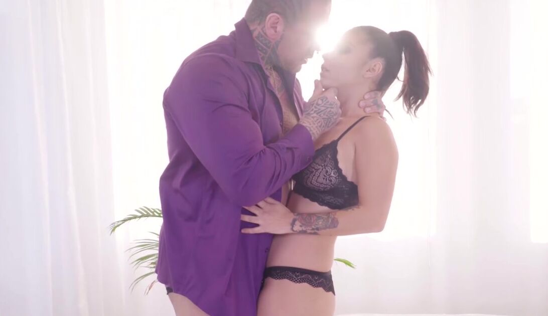 Сексуальная темноволосая латинка нашла себе накачанного мужика, тело которого покрыто татуировками. Сегодня парочка в очередной раз встречается, желая незабываемо провести время вместе. Привлекательная чикса игриво раздевается и позволяет посмотреть на фигуристое тело, после чего тут же принимается радовать партнера сначала минетом, а потом уже и вагинальным сексом на просторной кровати. Негодница вся аж извивается и не думает об остановках, все более страстно работая своим тазом и постанывая во время порки.