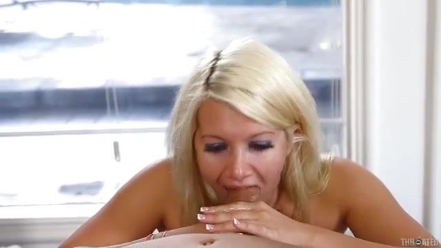 Обнаженная блондинка сосет пенис и пускает слюни