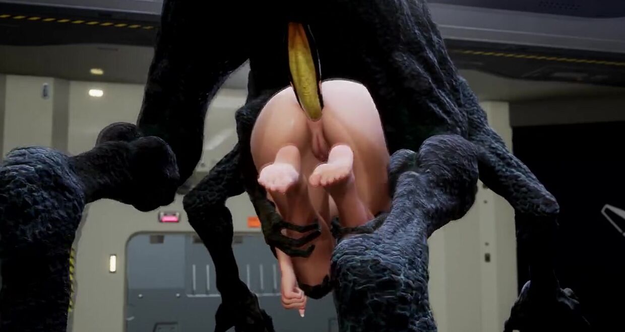 Напав на привлекательную красотку, злобное чудище сорвало с барышни одежду и белье. Поставив милочку на четвереньки, монстр глубоко засадил длинный пенис в узкое женское очко, которое все еще было невинно.