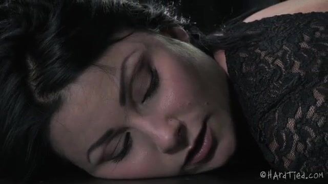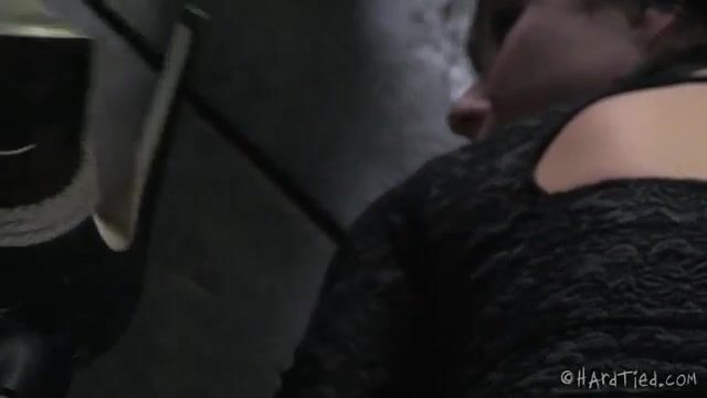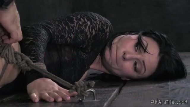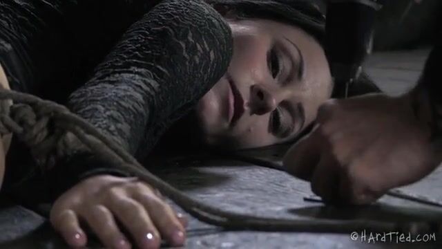 Злодей стягивает с пленницы трусики и привязывает к полу