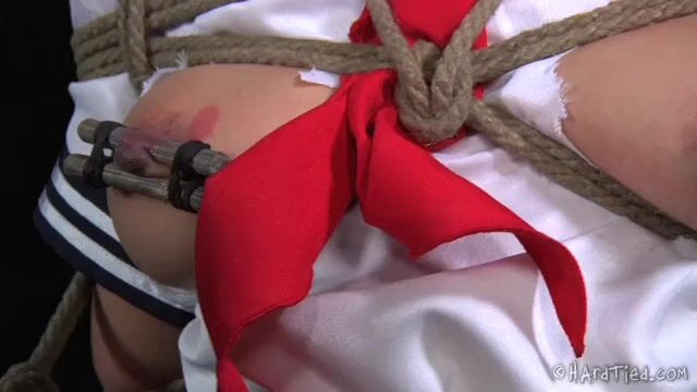 Злодей связал обнаженную пленницу с красивой киской