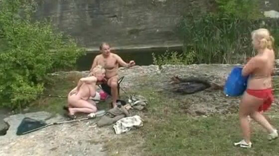 Зрелый рыбак трахнул у пруда двух развратных дамочек